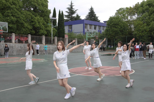 紧接着开赛的是由2021级民族学、文化产业管理专业和2019级历史学组成的女子联合队与2020级文化产业管理专业女子队。比赛开始前,啦啦队进行热舞暖场,现场气氛持续高涨,观看比赛的同学也越来越多。