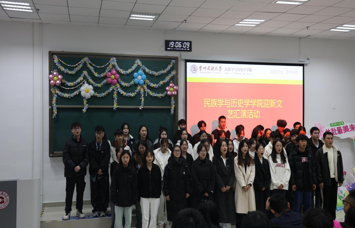 晚会现场暖意融融,张文艳老师、聂开吉老师、刘欢歌老师、王涛老师受邀出席,与2025级历史班、文物与博物馆学班、民族学班、文化产业管理班的全体新生,以及学院团委学生会的全体成员一同落座观看。大家欢聚一堂共同镌刻下属于“民历人”的初遇记忆,让陌生的距离在欢声笑语中悄然消融。