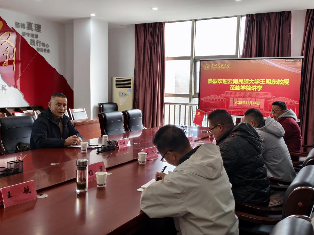 于2025年11月14日举办“《云南民大学报》2026年重点选题”学术讲座。活动由李浩教授主持,特邀云南民族大学学报编辑部主任王明东教授担任主讲,十余位教师参与交流。