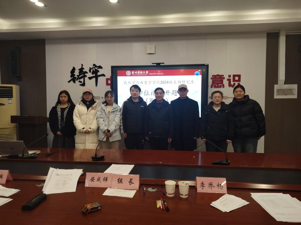 2024级文物研究生毕业论文开题答辩在北校区民历学院D412会议室举行。由2024级研究生盈佳欣、潘美霖、陈真雪、赵文静和王凌凡五位同学进行汇报。安成祥老师担任考核组组长,李乔杨老师、吴桐老师为成员,卜妹红老师为教学秘书,2025级研究生参加旁听。