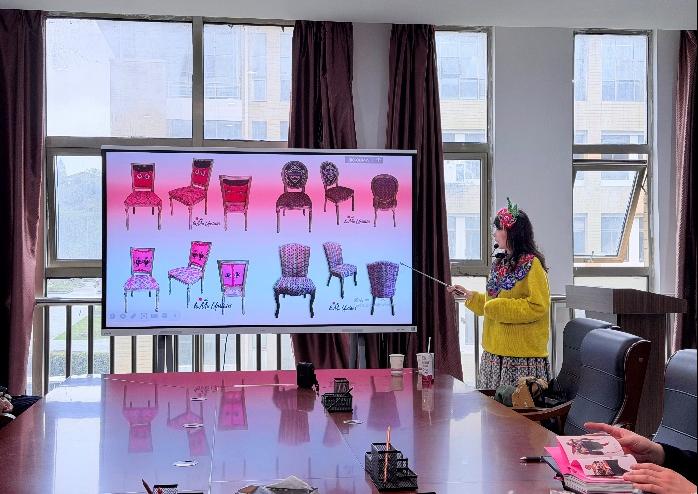 图4 张书林老师讲解刺绣元素家居设计作品