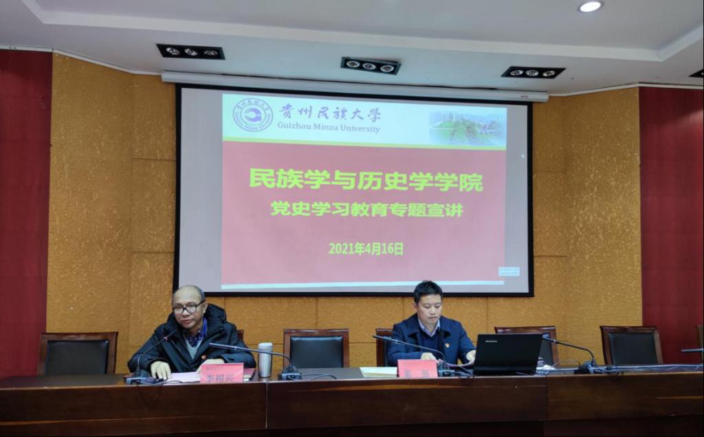 委员会在花溪校区行政楼第五会议室开展党史学习教育专题宣讲活动,会议由学院正处级组织员李相兴同志主持,学院院长、党委副书记董强同志出席会议,民族学与历史学院学院全体师生党员参会。