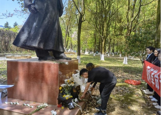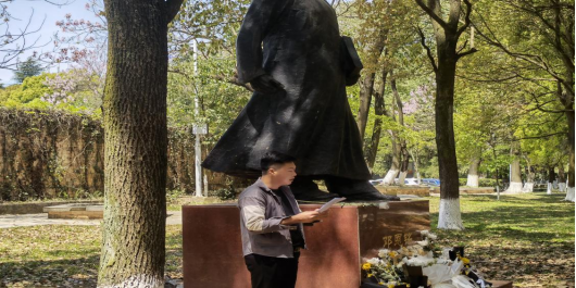 为更好地学习革命先烈的先进事迹,弘扬党的光荣传统和优良作风,传承革命先辈的红色基因,提高党支部全体师生的思想觉悟和政治站位。2022年4月8日,民族学学生第一党支部充分利用就近红色资源,全体党员齐聚成人动漫花溪校区邓恩铭塑像前开展“主题党日”现场教学活动。